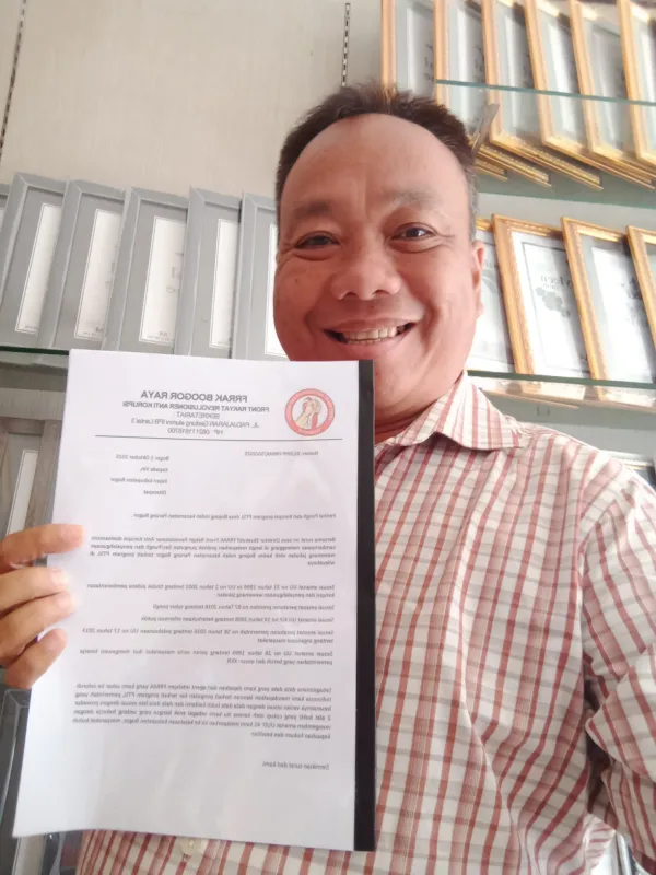 Ketua FRRAK Doelsamson Sambernyawa laporkan BPN kota Bogor dan Yetti Suryati terkait dokumen alas Hak SHM palsu.