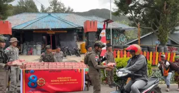 Enarotali, Paniai Timur — Dalam rangka memperingati Hari Ulang Tahun Korps Brimob Polri ke-80, Satgas Ops Damai Cartenz Sektor Paniai melaksanakan bakti sosial dengan membagikan paket makanan kepada warga di Jl. Aikai, Enarotali, Kabupaten Paniai Timur, pada Jumat (14/11/2025). Kegiatan dipimpin langsung oleh Ipda Nofri Surya Rossa selaku Dansektor Satgas Tindak Sektor Paniai dan melibatkan personel Brimob serta anggota Satgas yang bertugas di wilayah tersebut.