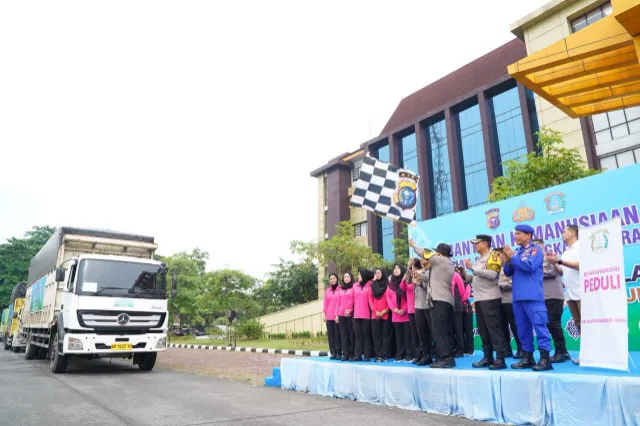 Polda Riau mengerahkan 9 kendaraan, terdiri dari 6 truk logistik (2 truk untuk Aceh, 2 untuk Sumatera Utara, dan 2 untuk Sumatera Barat) serta 3 mobil Patwal Ditlantas dengan pengamanan Brimob dan Propam. Armada ini membawa bantuan pengungsi dalam jumlah besar berupa beras 4 ton, mie instan 900 dus, Pop Mie 300 dus, sarden 120 dus, air mineral 420 dus, kue kaleng 420 dus, biskuit 300 dus, susu kental manis 120 dus, gula 120 dus, teh 60 pax, kopi 60 pax, selimut 1.450 pcs, susu bayi 120 dus, pampers 180 pcs, pembalut wanita 180 pcs, kontainer box 150 unit, serta pakaian layak pakai 68 koli. Bantuan ini merupakan hasil sinergi Polda Riau dan Bhayangkari sebagai wujud respon cepat atas kebutuhan warga.