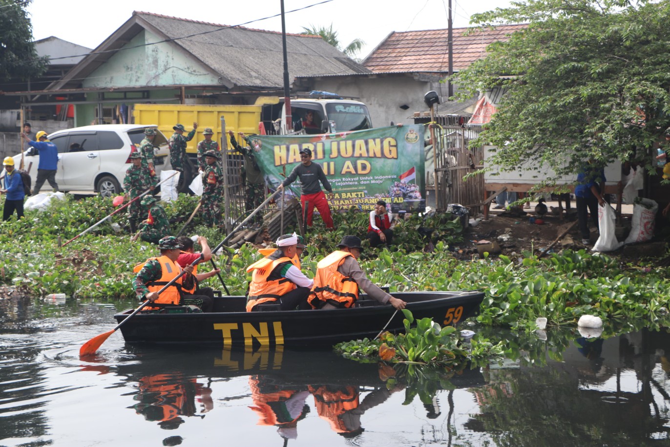 Hari Spesial HUT Kodam Jaya Ke 76 dan Hari Juang Kartika TNI Ke-80 Kodim 0509/Kabupaten Bekasi Gelar Karya Bhakti Bersihkan Kali Blencong