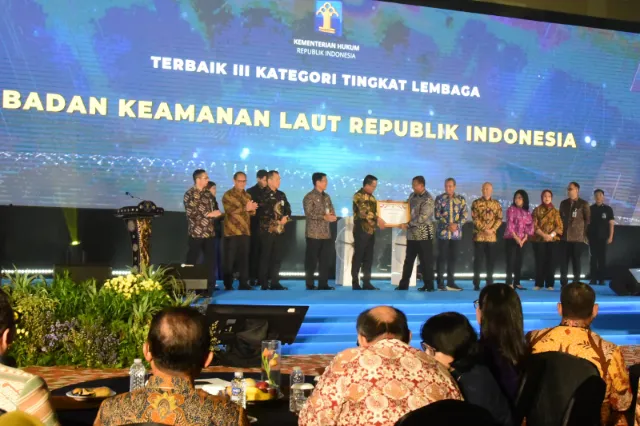 Jakarta – Bakamla RI mendapat penghargaan Tiga terbaik dalam perolehan Indeks Reformasi Hukum Tahun 2025 Kategori Lembaga. Penghargaan tersebut diberikan langsung oleh Menteri Hukum Republik Indonesia Supratman Andi Agtas kepada Deputi Opsla Laksda Bakamla Eko Wahjono dalam acara Refleksi Akhir Tahun Kementerian Hukum Tahun 2025, di Kemayoran, Jakarta Pusat, Kamis (18/12/2025).