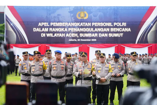 Jakarta – Wakil Kepala Kepolisian Republik Indonesia (Wakapolri) Komjen Pol Prof. Dr. Dedi Prasetyo memimpin apel pemberangkatan personel Polri dalam rangka penanggulangan bencana alam di wilayah Aceh, Sumatera Utara, dan Sumatera Barat. Apel tersebut digelar di Lapangan Bhayangkara Mabes Polri sebagai tindak lanjut perintah Kapolri untuk memastikan kesiapan personel, peralatan, serta sarana dan prasarana pendukung di wilayah terdampak bencana.