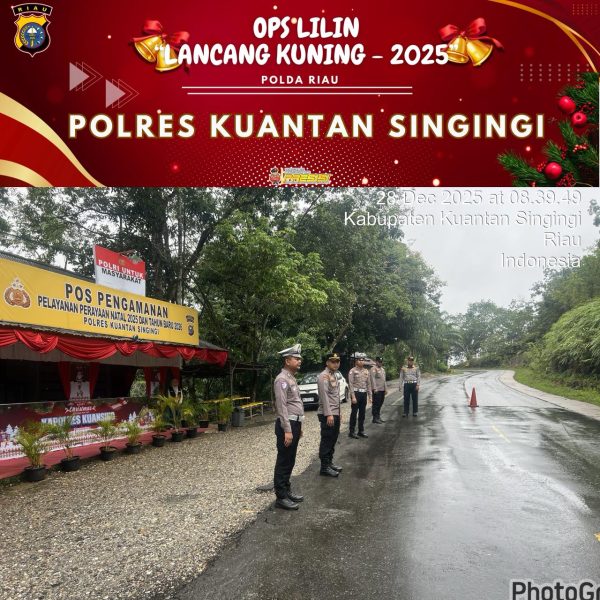 KUANSING – Meski wilayah Kabupaten Kuantan Singingi diguyur hujan deras disertai angin kencang, personel Pos Pengamanan Nataru tetap sigap memberikan pelayanan prima kepada masyarakat dan pemudik, Minggu (28/12/2025).