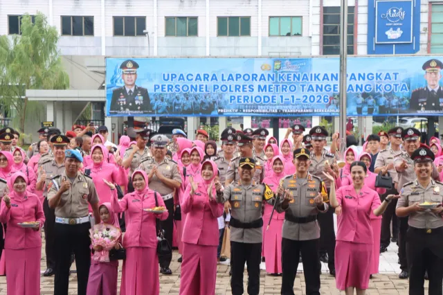 Tangerang – Polres Metro Tangerang Kota menggelar Upacara Kenaikan Pangkat Personel Periode 1 Januari 2026, Rabu (31/12/2025). Upacara berlangsung di lapangan apel Polres Metro Tangerang Kota dan dipimpin langsung oleh Kapolres Metro Tangerang Kota, Kombes Pol. Dr. Raden Muhammad Jauhari, S.H., S.I.K., M.Si.