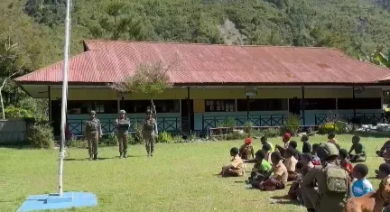 PUNCAK JAYA – Suasana hangat terasa di halaman SD Inpres Dondobaga, Distrik Mulia, Kabupaten Puncak Jaya, Sabtu pagi (31/1/2026). Di tengah keterbatasan fasilitas dan jauhnya akses pendidikan di wilayah pegunungan Papua, kehadiran personel Satgas Operasi Damai Cartenz 2026 membawa warna berbeda: senyum, semangat, dan pelajaran tentang cinta Tanah Air.