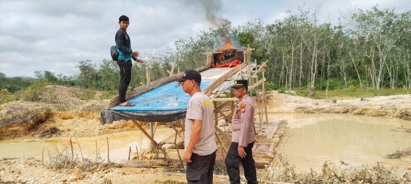 Musnahkan 5 Rakit Tambang, Polsek Pangean Tertibkan Aktivitas PETI di Desa Tanah Bekali