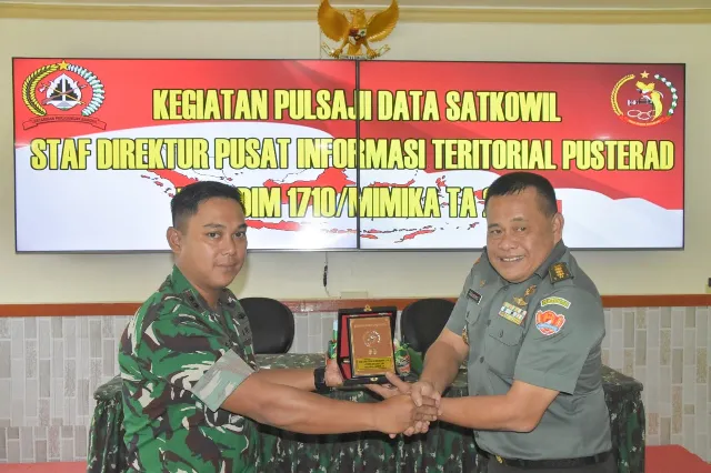 Timika – Kodim 1710/Mimika menerima kunjungan Tim Pulsaji Data Satkowil Staf Direktur Pusat Informasi Teritorial Pusat Teritorial Angkatan Darat TA 2026 yang dilaksanakan di Makodim 1710/Mimika, Selasa (24/2/2026). Kegiatan tersebut berlangsung di Ruang Rekreasi Makodim 1710/Mimika, Kabupaten Mimika, sebagai bagian dari upaya peningkatan validitas dan optimalisasi data satuan kewilayahan.