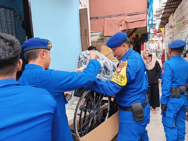 Jakarta β Direktorat Polairud Polda Metro Jaya memberikan bantuan kursi roda dan paket sembako kepada warga pesisir di kawasan Muara Angke, Kali Adem, Pluit, Penjaringan, Jakarta Utara. Bantuan diberikan kepada seorang lansia penderita stroke menahun sebagai bentuk kepedulian terhadap masyarakat pesisir, Kamis (26/2/2026).