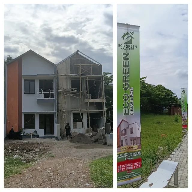 Bogor | HSB – Bangunan dan banner bertuliskan “ECO GREEN – Residensial & Kost, Full Furnish, Bisa Dibayar Tahunan/Bulanan” terpasang di depan sebuah bangunan hunian di Jalan Cilubang Mekar, Kampung Carang Pulang, Desa Cikarawang, Kecamatan Dramaga, Kabupaten Bogor. Keberadaan iklan tersebut memunculkan pertanyaan, apakah bangunan itu telah mengantongi izin sebagai rumah kost sesuai ketentuan perundang-undangan?