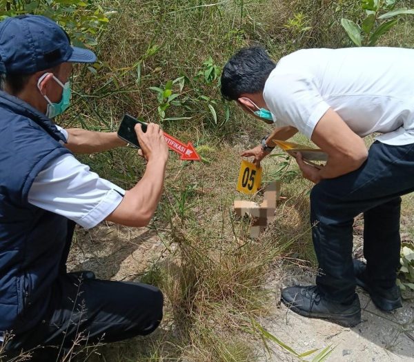 KUANSING – Polsek Singingi Hilir bersama Satreskrim Polres Kuantan Singingi menangani penemuan kerangka atau tulang belulang manusia di Areal Compertemen E 057 PT RAPP Estate Teso Blok Teso Barat, Desa Bukit Raya, Kecamatan Singingi Hilir, Rabu (4/3/2026).