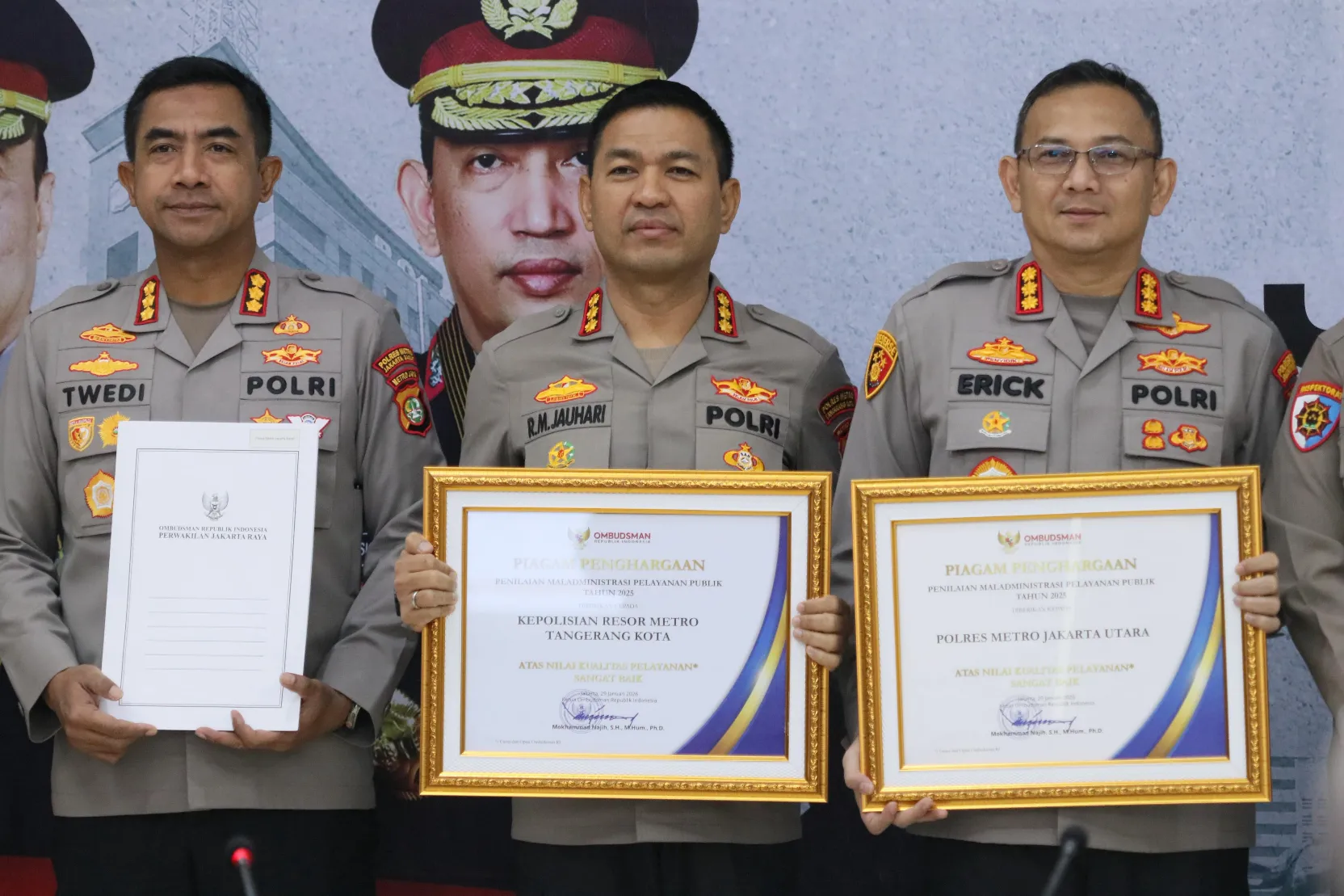 TANGERANG β Komitmen dalam meningkatkan kualitas pelayanan kepada masyarakat kembali membuahkan hasil bagi jajaran Polres Metro Tangerang Kota. Pada Kamis (5/3/2026), institusi tersebut menerima penghargaan dari Ombudsman Republik Indonesia Perwakilan Jakarta Raya dan Banten atas penilaian Maladministrasi Penyelenggaraan Pelayanan Publik Tahun 2025.