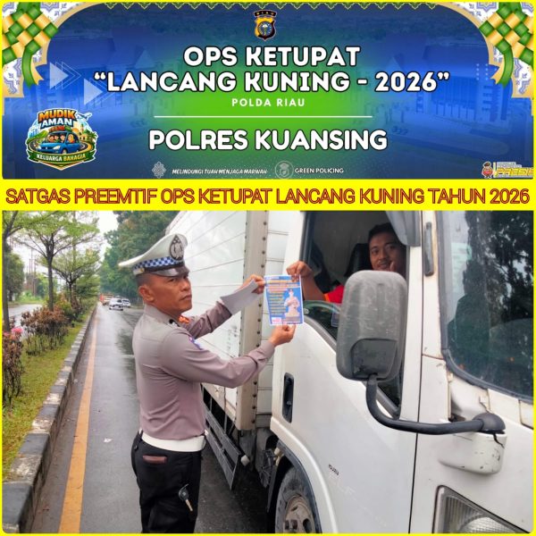 Polres Kuantan Singingi mengimbau kepada seluruh masyarakat agar selalu mematuhi aturan lalu lintas, mengutamakan keselamatan, serta bersama-sama menjaga keamanan dan ketertiban selama pelaksanaan Operasi Ketupat Lancang Kuning 2026.