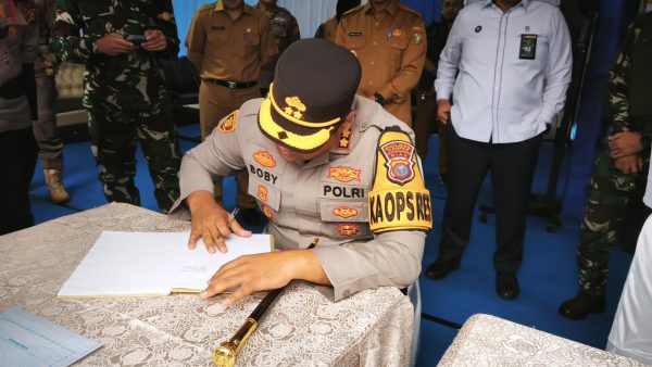 KAMPAR – Kapolres Kampar, AKBP Boby Putra Ramadhan Sebayang mendampingi langsung Bupati H Ahmad Yuzar beserta forkopimda tinjau Pos Terpadu Lebaran 2026 di Lapangan Merdeka Bangkinang, Senin (14/3/2026).