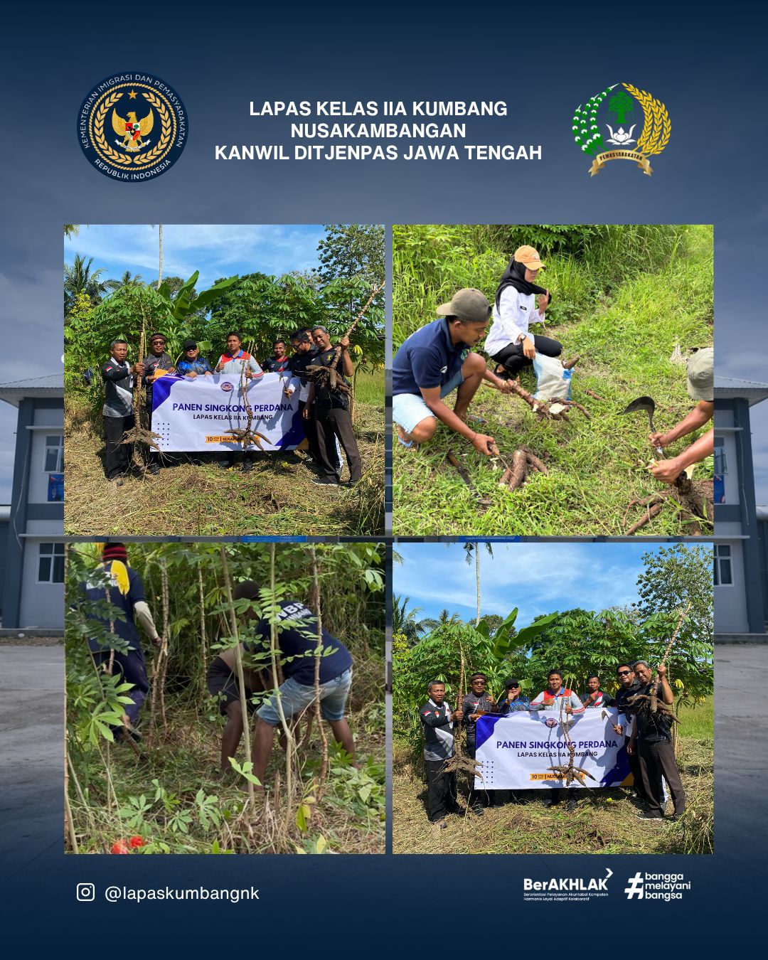 NUSAKAMBANGAN, Hariansinarbogor.com Dalam upaya mewujudkan pembinaan kemandirian dan mendukung program ketahanan pangan, Lembaga Pemasyarakatan (Lapas) Kelas IIA Kumbang melaksanakan kegiatan Panen Perdana Singkong, Jumat (10/04/2026).