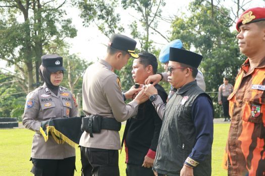 Dalam rangkaian kegiatan, dilakukan penyematan Sabuk Kamtibmas secara simbolis serta penyerahan bibit pohon sebagai bentuk komitmen menjaga keamanan sekaligus kelestarian lingkungan.