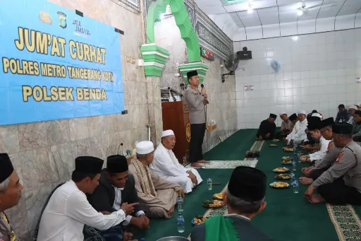 Tangerang – Suasana Masjid Al-Kamal di kawasan Benda, Kota Tangerang, tampak lebih ramai dari biasanya pada Jumat (17/4/2026). Selain dipadati jamaah untuk menunaikan salat Jumat, hari itu juga dihadiri Kapolres Metro Tangerang Kota Kombes Pol. Dr. Raden Muhammad Jauhari dalam rangka kegiatan Jumat Keliling dan Jumat Curhat.
