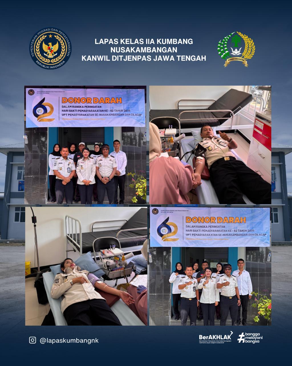 NUSAKAMBANGAN, Hariansinarbogor.com Dalam rangka memeriahkan Hari Bakti Pemasyarakatan (HBP), Lembaga Pemasyarakatan (Lapas) Kelas IIA Kumbang menggelar kegiatan sosial berupa donor darah, Kamis (23/04/2026).