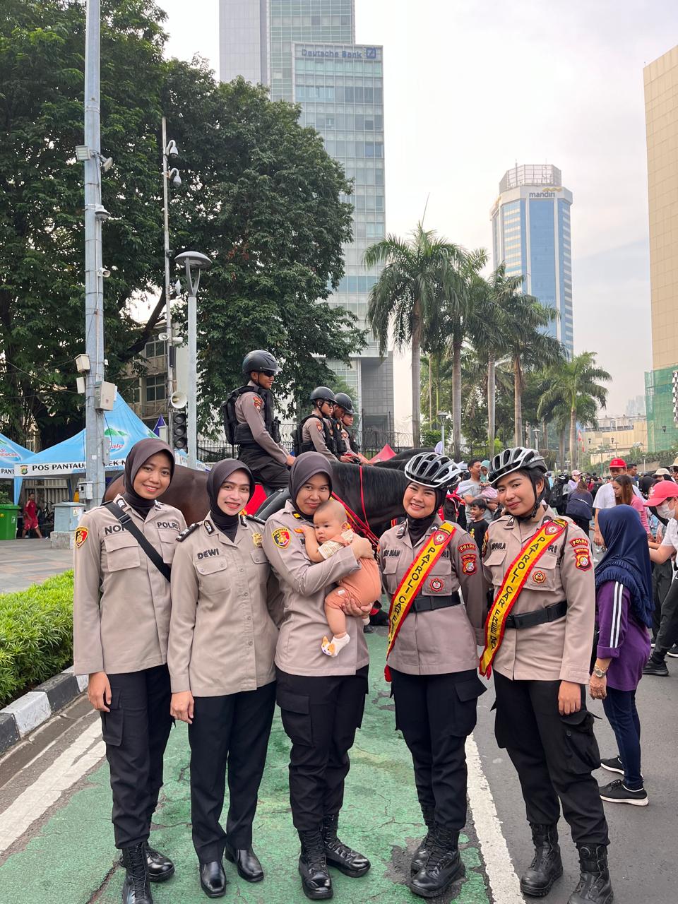 Polwan Polres Metro Jakarta Pusat Amankan Car Free Day di Bundaran HI