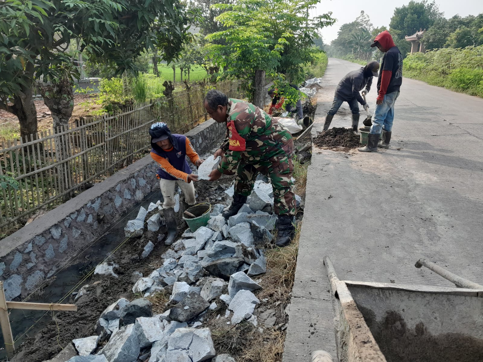 Bakti TNI: Babinsa Bersama Warga Bersihkan Jalan dan Drainase di Mangunjaya