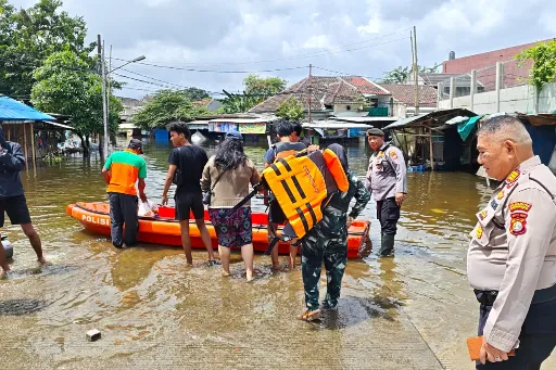 Tanggap Darurat Banjir, Polres Metro Tangerang Kota Kerahkan Perahu Karet Evakuasi Warga Jatiuwung