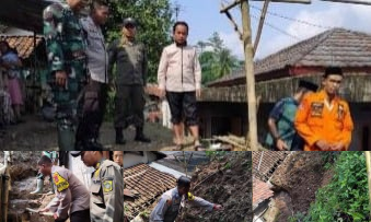 Polsek Nanggung Bersama Instansi Terkait Mengecek Lokasi TKP Adanya Tanah Longsor di Desa Nanggung Menimpa Dapur Rumah Warga