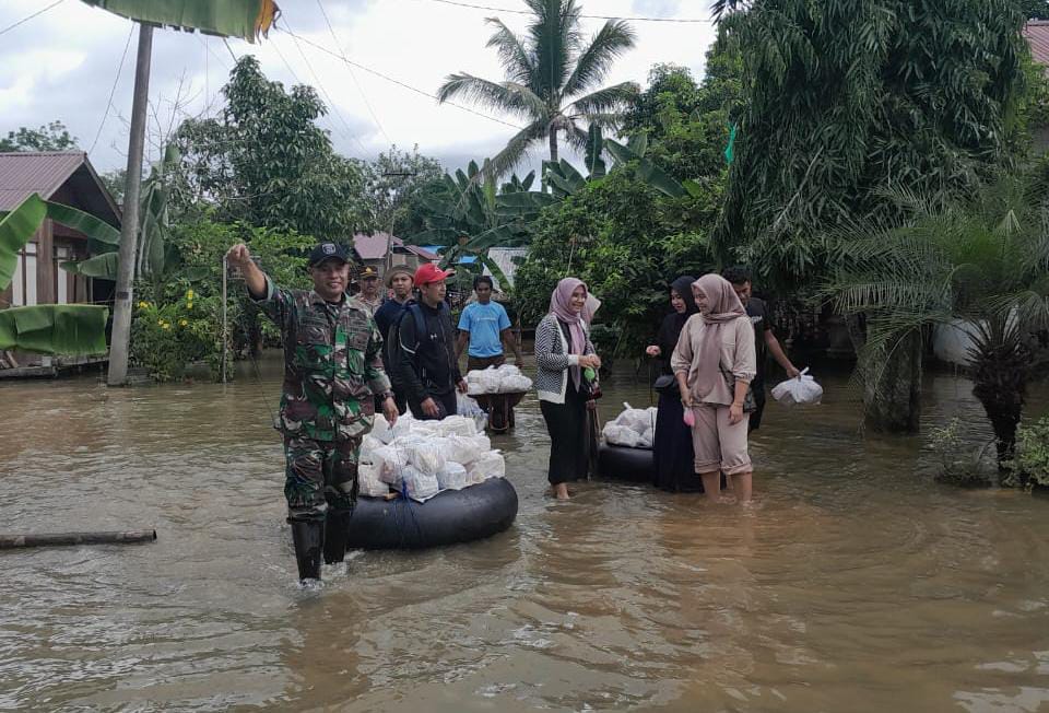 TNI Bersama Masyarakat Bantu Distribusi Sembako Untuk Korban Banjir Kalimantan Selatan