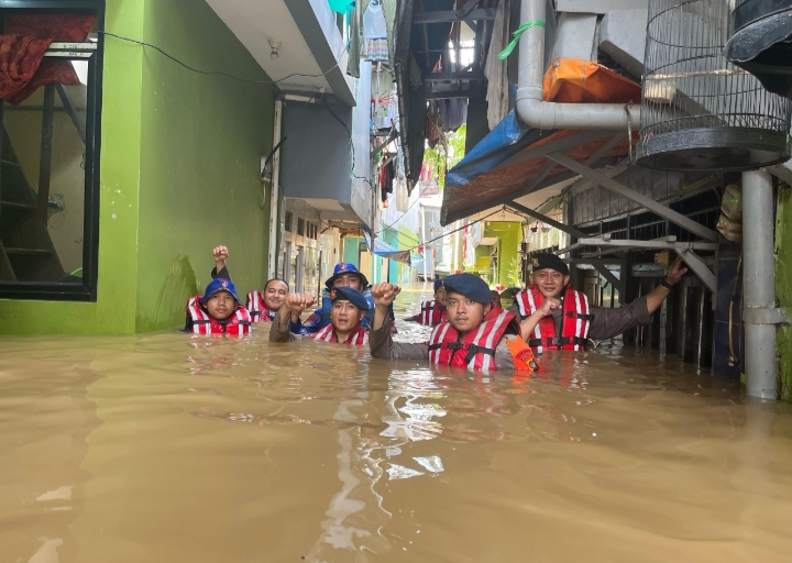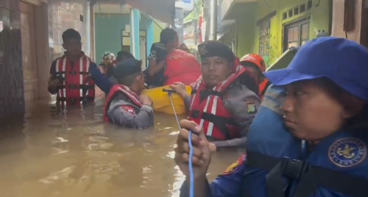 Polda Metro Jaya Bantu Evakuasi Warga Terdampak Banjir di Jatinegara