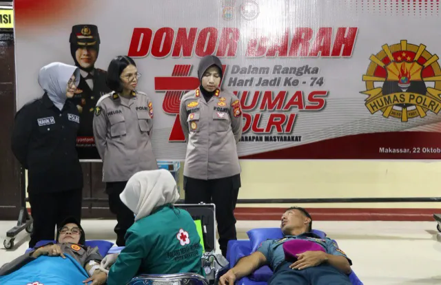Sambut HUT Humas Polri Ke-74, Polres Pelabuhan Makassar Tebar Kepedulian Lewat Aksi Donor Darah