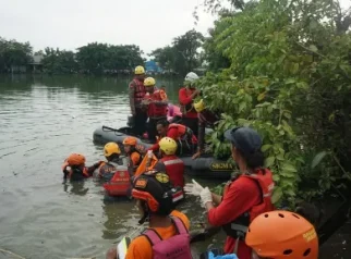 Tim SAR Brimob Polda Metro Evakuasi Ibu-Ibu Yang Tenggelam di Danau Bekasi