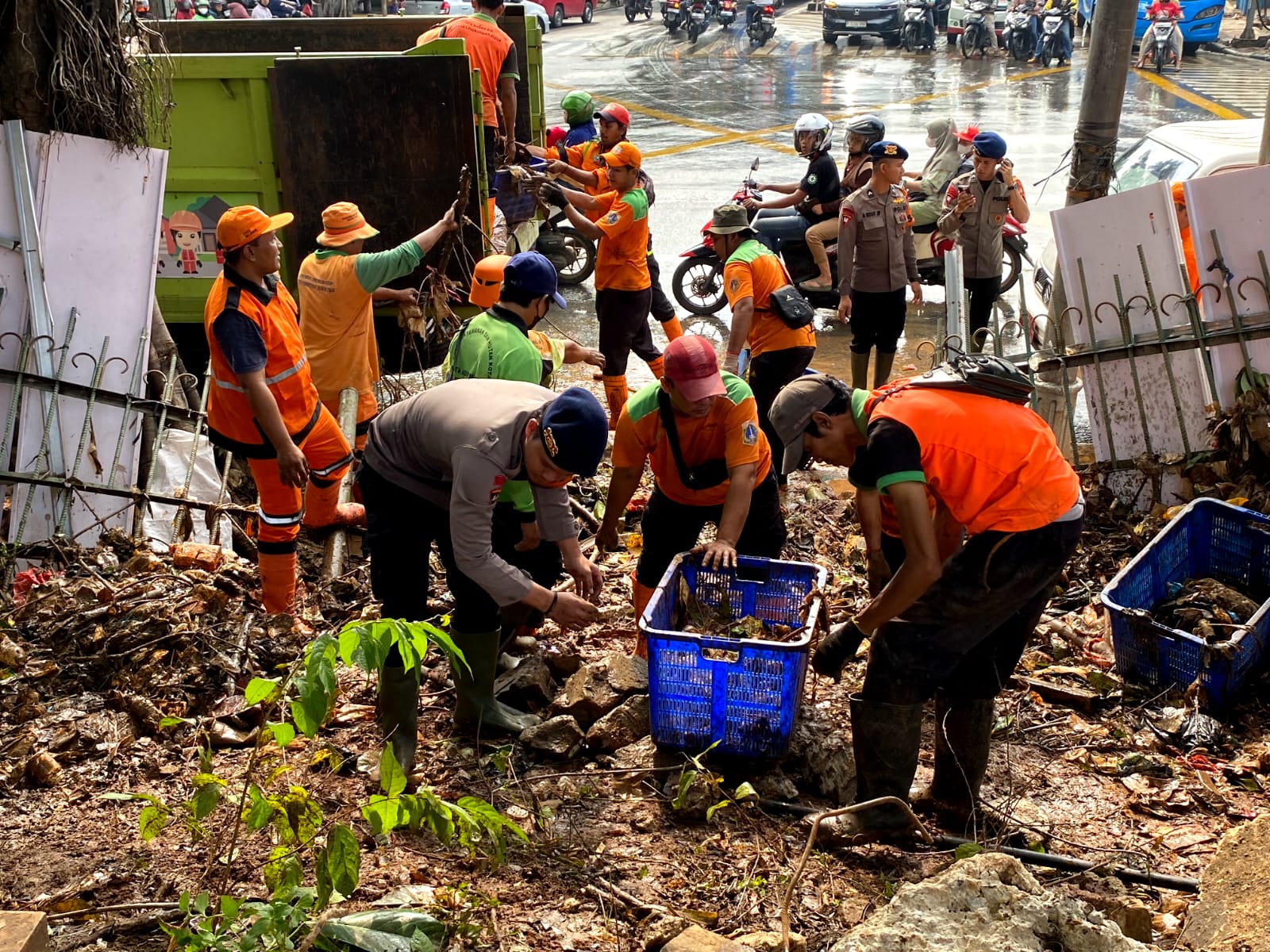 Upaya Polisi Dan 3 Pilar Dengan Adanya Tanggul Jebol di TL Pertigaan HeK Kramatjati