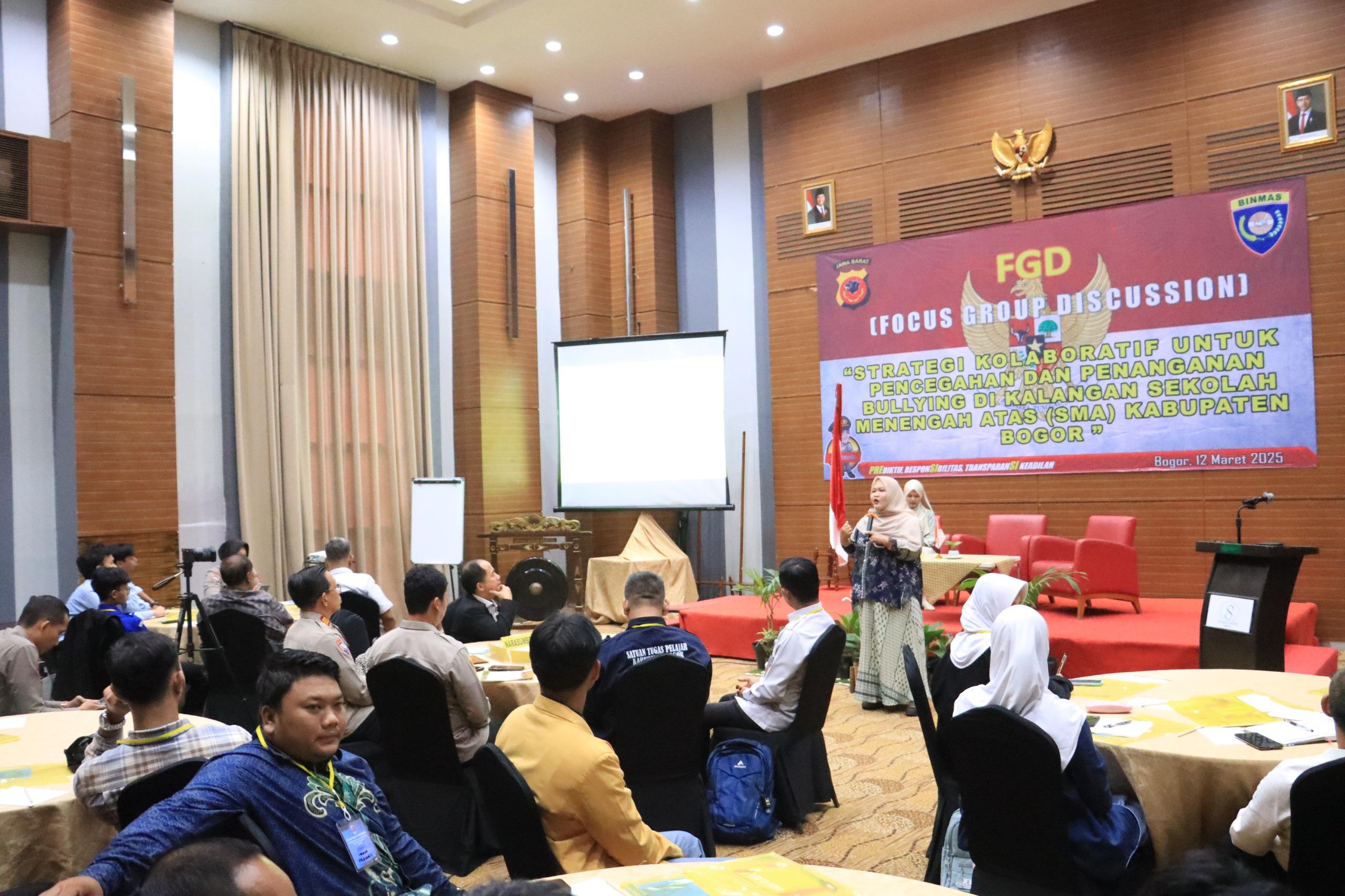 Polres Bogor Gelar FGD Strategi Kolaboratif Diskusi Pencegahan Dan Penangan Bullying Di Kalangan Pelajar SMA Dan SMK Wilayah Kabupaten Bogor