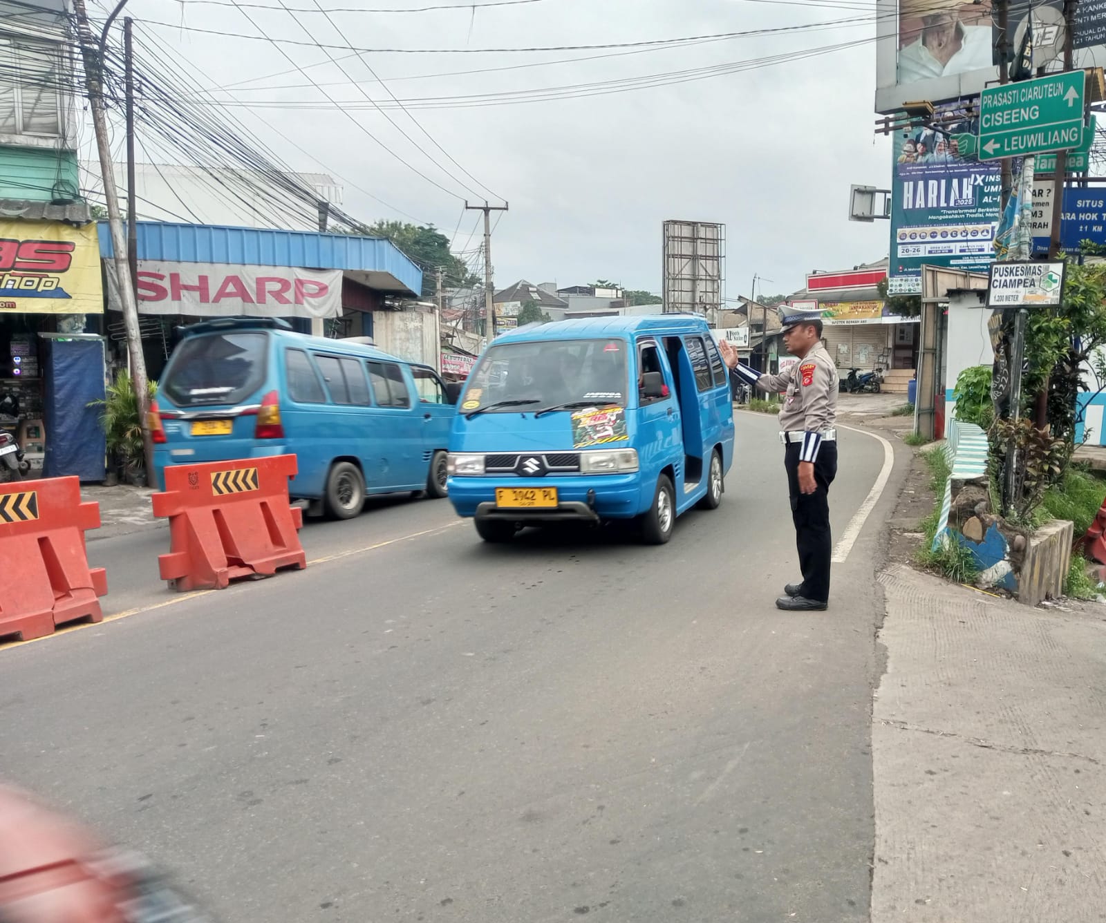 Anggota Lantas Polsek Ciampea Bantu Pengaturan Lalu Lintas Demi Kenyamanan Warga