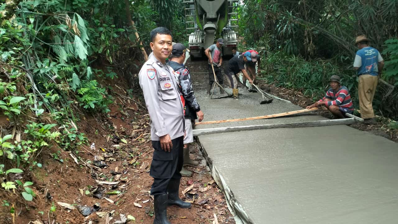 Bhabinkamtibmas Wilayah Hukum Polsek Tanjungsari Giat Cooling Sistem Monitoring Pengecoran Jalan