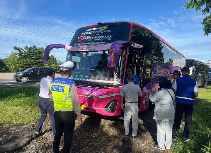Sat Lantas Polres Bogor Bersama Stakeholder Terkait Laksanakan Pengecekan Ramp check Di Rest Area Km 45 Tol Jagorawi