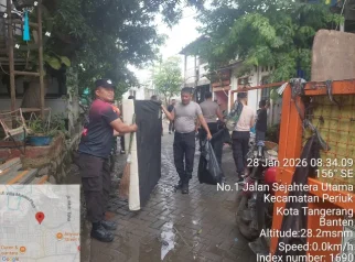 Antisipasi Banjir, Polsek Jatiuwung Pimpin Kerja Bakti Massal di RW 08 Periuk Damai