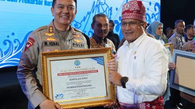 PEKANBARU – Kapolda Riau, Irjen Pol Mohammad Iqbal menerima piagam penghargaan dari Kepala BNN RI….