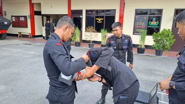 Dalam Rangka OMP LK 2024, Kasub Satgas PHH Brimobda Riau Melakukan Pemberian Materi Perkap No. 1 Tahun 2009