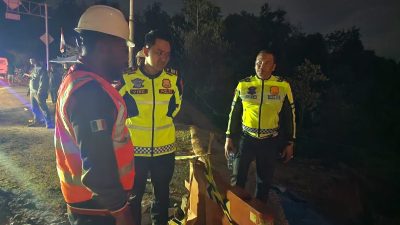 Jalan Lintas Riau Sumbar Amblas, Satlantas Polres Kampar Berlakukan Sistem Buka Tutup
