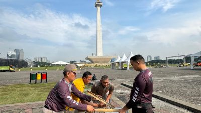 JAKARTA – Anggota kepolisian, event organizer (EO) dan petugas kebersihan bergotong-royong membersihkan sisa-sisa sampang di…