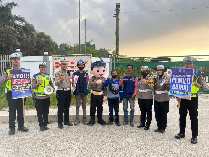 Jelang Pelaksanaan Pemilu Damai 2024, Satlantas Polres Pelalawan Gencar Lakukan Cooling System Tentang Sosialisasi dan Edukasi Budaya Tertib Berlalu Lintas