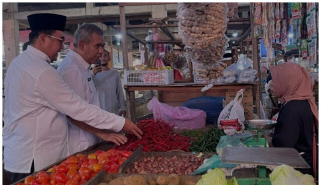 Pastikan Ketersedian dan Harga Sembako, Pj Bupati Kampar Tinjau Pasar Ulul Albab Siak Hulu