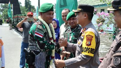 KAMPAR (HSB) || Kapolres Kampar AKBP Ronald Sumaja menghadiri penyambutan Satgas Pamtas RI – PNG…