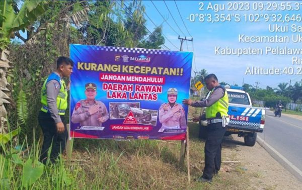 Tekan Angka Kecelakaan Lalu Lintas, Satlantas Polres Pelalawan Pasang Spanduk Himbauan Keselamatan Berlalu Lintas