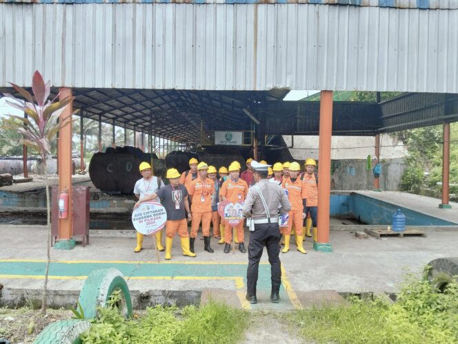 Sambangi Karyawan PT Pertamina Hulu Rokan Ukui, Satlantas Polres Pelalawan Sampaikan Pesan Pilkada Damai