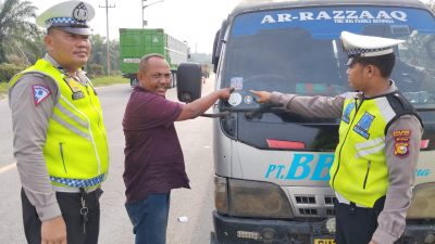 Satlantas Polres Rohil Bagikan 50 Stiker Ops Zebra LK 2023 ke Pengendara